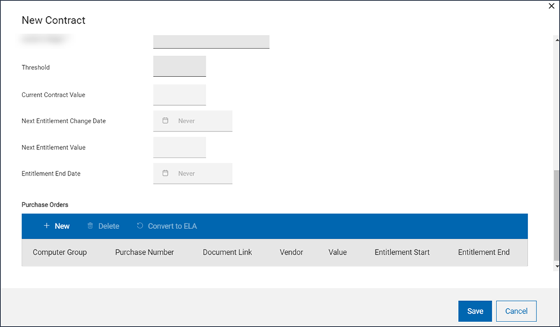 En fonction des valeurs de bon de commande fournies, les valeurs Valeur du contrat en cours, Date de modification de l'autorisation suivante, Valeur de l'autorisation suivante et Date de fin de l'autorisation sont calculées. Lorsqu'un contrat n'a pas de bon de commande, les valeurs indiquent "<no data>". |