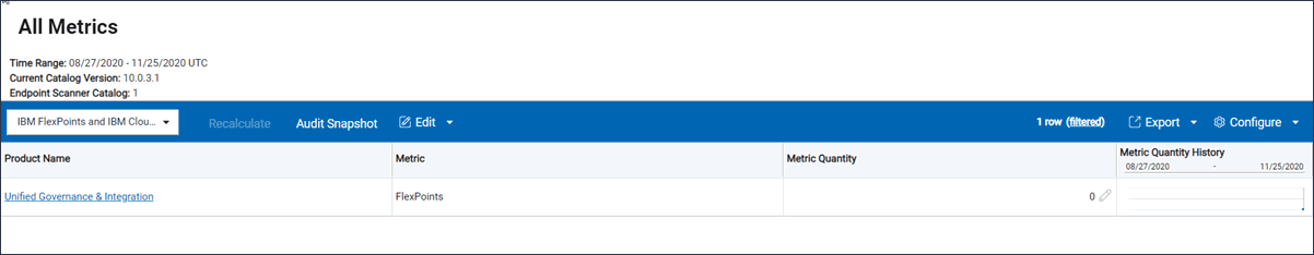 Disponible à partir de la version 9.2.13. Lorsqu'un produit logiciel est affecté à un groupement FlexPoint, convertit le nombre d'unités métriques utilisées par le produit pour FlexPoints. Si le produit utilise une métrique de licence dont l'utilisation n'est pas calculée par , vous pouvez spécifier manuellement le nombre d'unités métriques à convertir en FlexPoints.