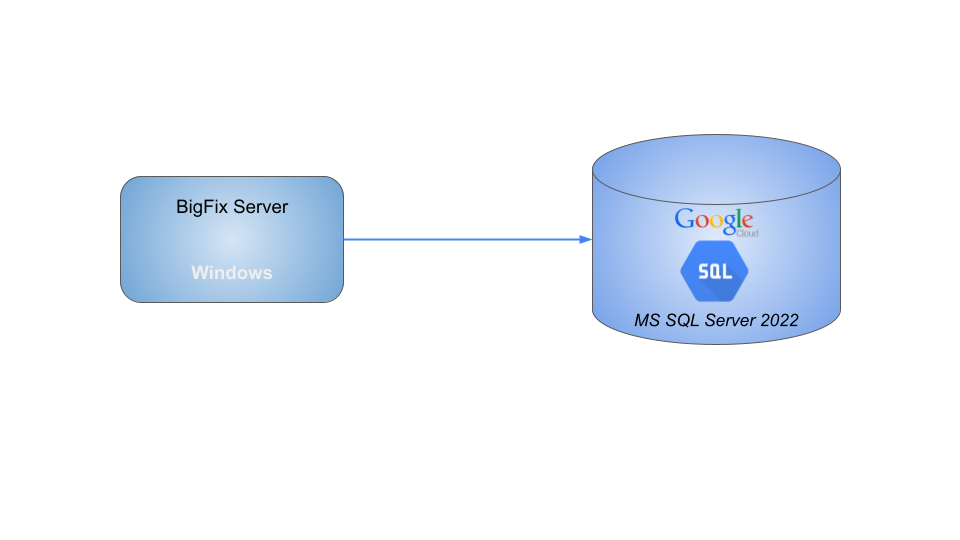 Starting from BigFix Version 11 Patch 2, the Windows Server installation introduces the support of Windows (2019 or later) with Google Cloud SQL for Microsoft SQL Server 2022 database.