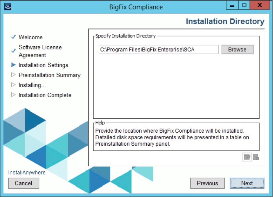 注: BigFix Compliance Analytics はデフォルトで HTTPS が使用されます。 - インストール先のパス