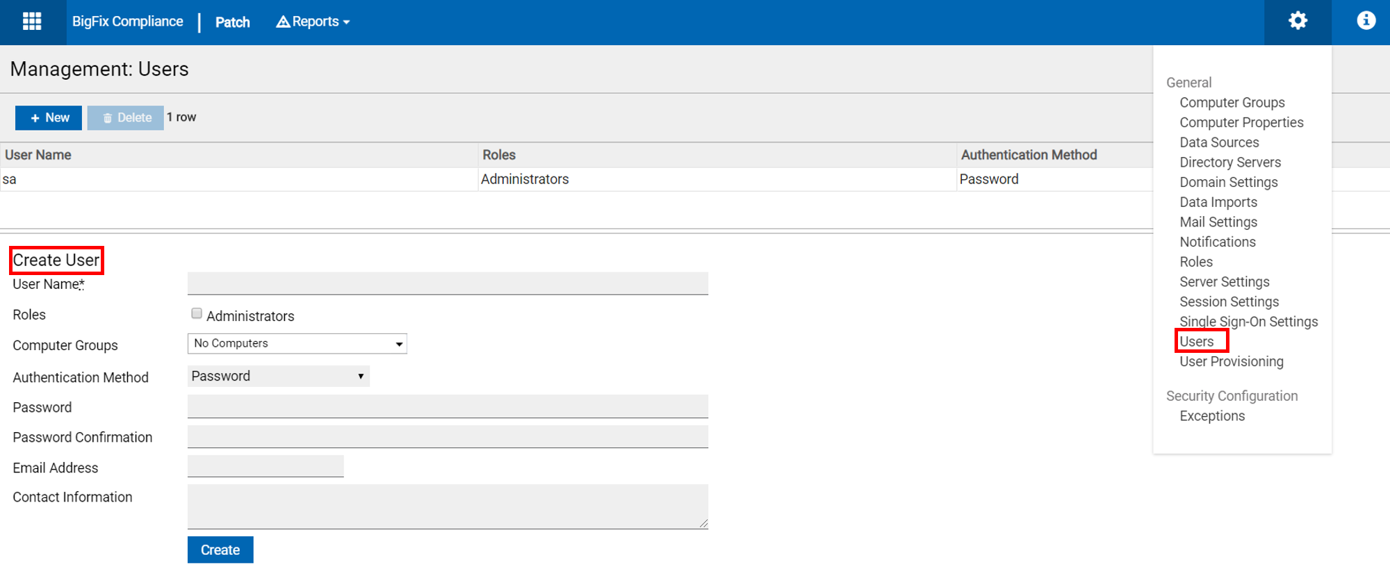 「ユーザー」セクションでは、ユーザーの作成および編集したり、役割を割り当てたり、ユーザーがアクセスできるコンピューター・グループのセットや認証方法を割り当てたりできます。管理者は、ユーザーのパスワード、E メール・アドレス、連絡先情報を編集できます。