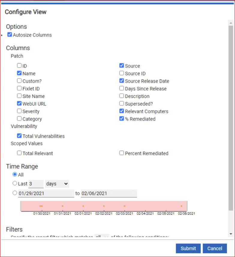 パッチ・グリッド・レポートの WebUI URL 列の有効化