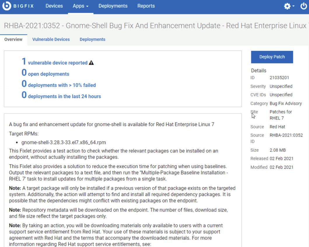パッチの詳細ページの「WebUI 内のビュー」リンクをクリックします。