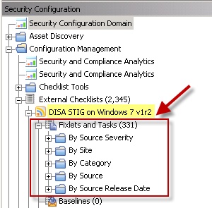 - チェックリストを展開し、「Fixlet とタスク」をクリックします。