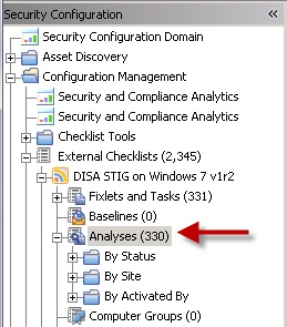 チェック項目 Fixlet に加え、いくつかのチェックリストにはチェックされる項目の実際の値が含まれています。測定値は分析プロパティーを使用して取得されます。チェックリスト内で「分析」サブノードをクリックして、測定値の分析を検索できます。