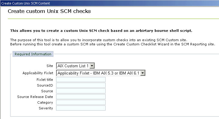 - の順に移動します。「カスタム Unix SCM チェックの作成」ダッシュボードが開きます。