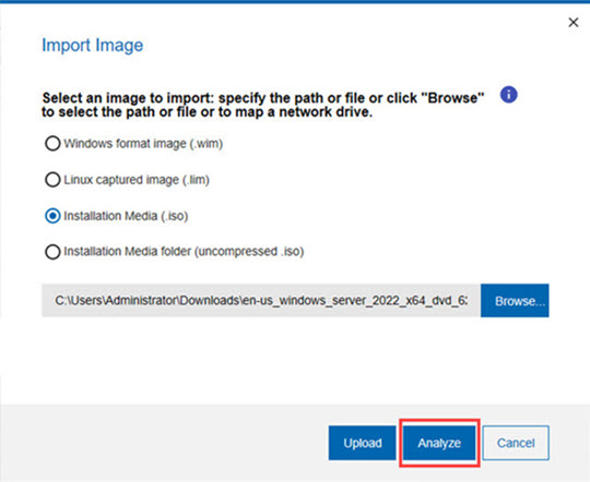- Microsoft メディア作成ツールを使用して生成された .esd フォーマットのインストール・メディアから Windows 10 イメージをインポートする場合、イメージに含まれるのは単一のアーキテクチャー (x86 または x64) である必要があり、両方を含めることはできません。両方が含まれる場合、インポート操作は失敗します。
