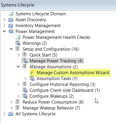 注: 「想定値を管理」は、BigFix 電源管理のオプション機能です。カスタム想定値を設定しなかった場合は、デフォルトの想定値が使用されます。