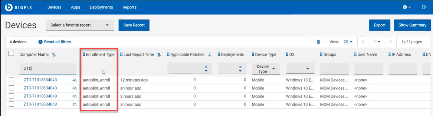 BigFix MCM は、Windows Autopilot 登録をサポートしています。