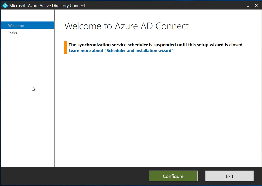 - Azure AD Connect をダウンロードし、Azure AD Connect を開き、「構成」をクリックします。