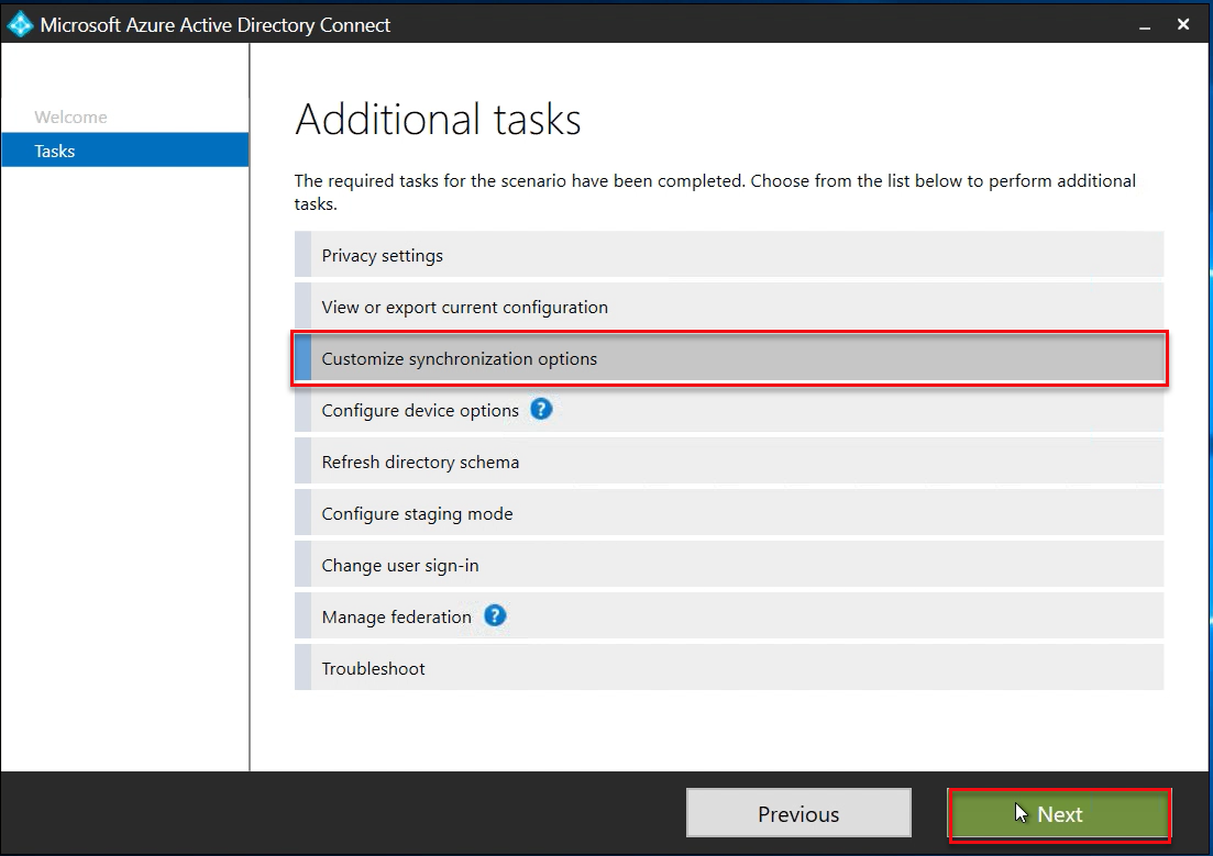 - 「Customize synchronization」オプションを選択し、「次へ」をクリックします。