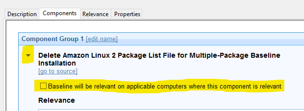 「このコンポーネントが該当する場合はベースラインも適用可能なコンピューターに該当する (Baseline will be relevant on applicable computers where this component is relevant)」オプションが選択されていないことを確認します。