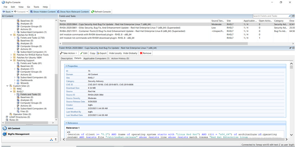 RHEL8 でのモジュラー Fixlet のデプロイメント