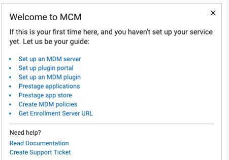 - 管理者 - このタブから、 MCM コンポーネントの設定、インストーラーとアプリの事前ステージング、登録設定の構成、リカバリー・キーの設定を実行できます。