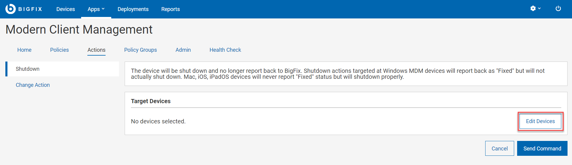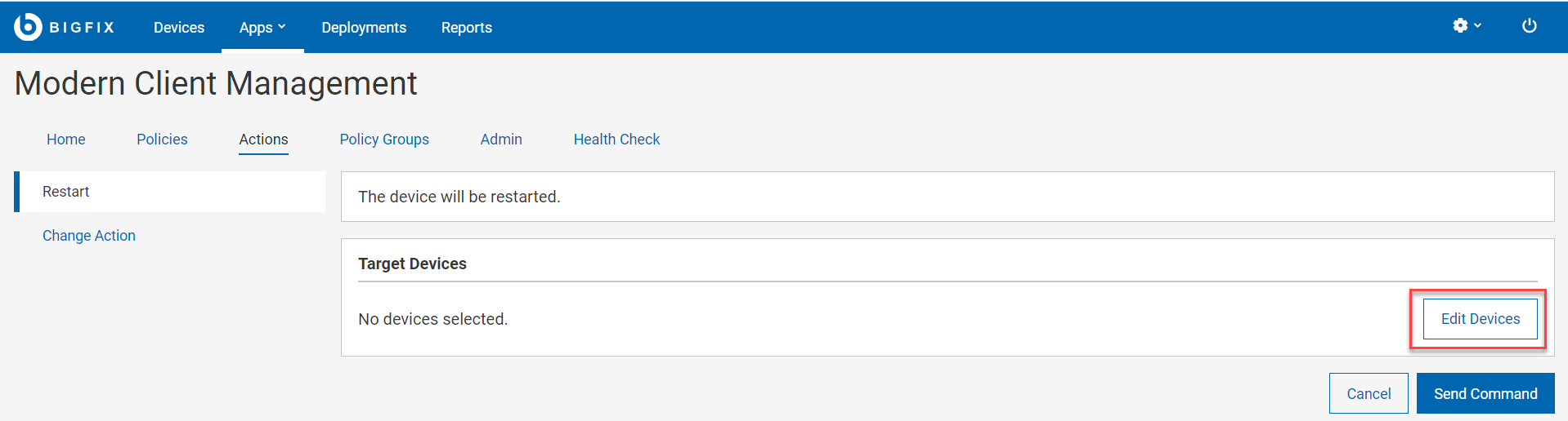 2. From the following screen, click Edit Devices to select devices in your environment that have BigFix agent installed.