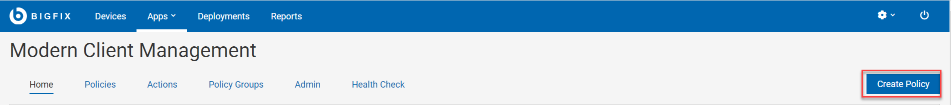 You can create and manage policies specific to Windows, Apple (macOS/iOS/iPadOS), and Android devices through BigFix WebUI.