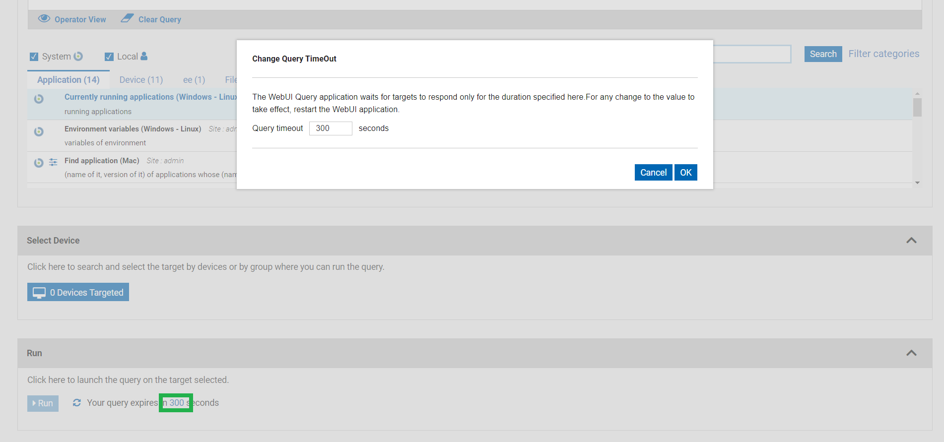 set Query timeout. The default time is 300 sec and the maximum limit is 900 sec. To change