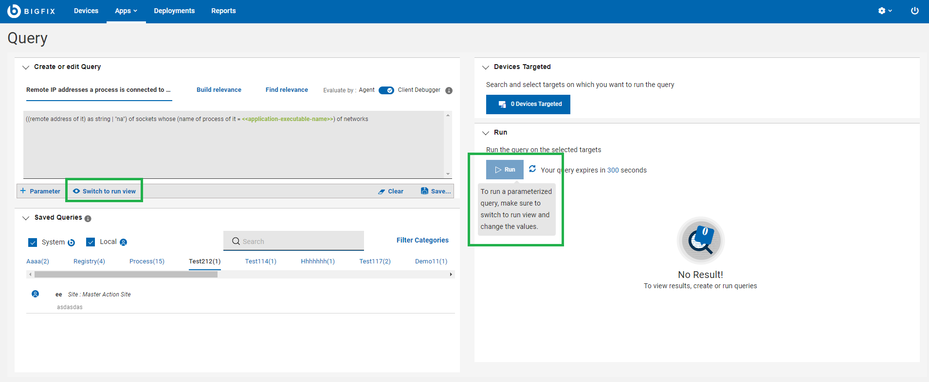 Note: When pairing queries and targets, keep in mind that queries that are concise and limited in scope run most efficiently. Broad queries return larger data sets and use more resources and affect the query performance. - You can select individual devices or groups. The targets are listed as per the