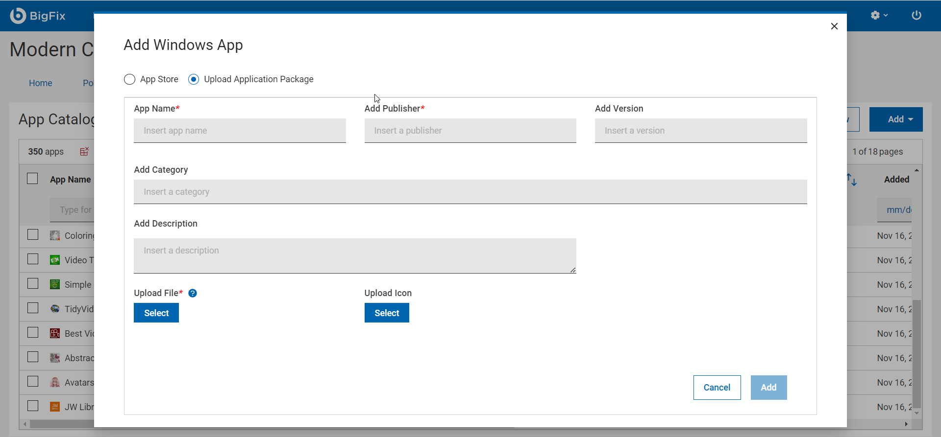 Note: If the selected app is already added to the app catalog, you receive a warning message.