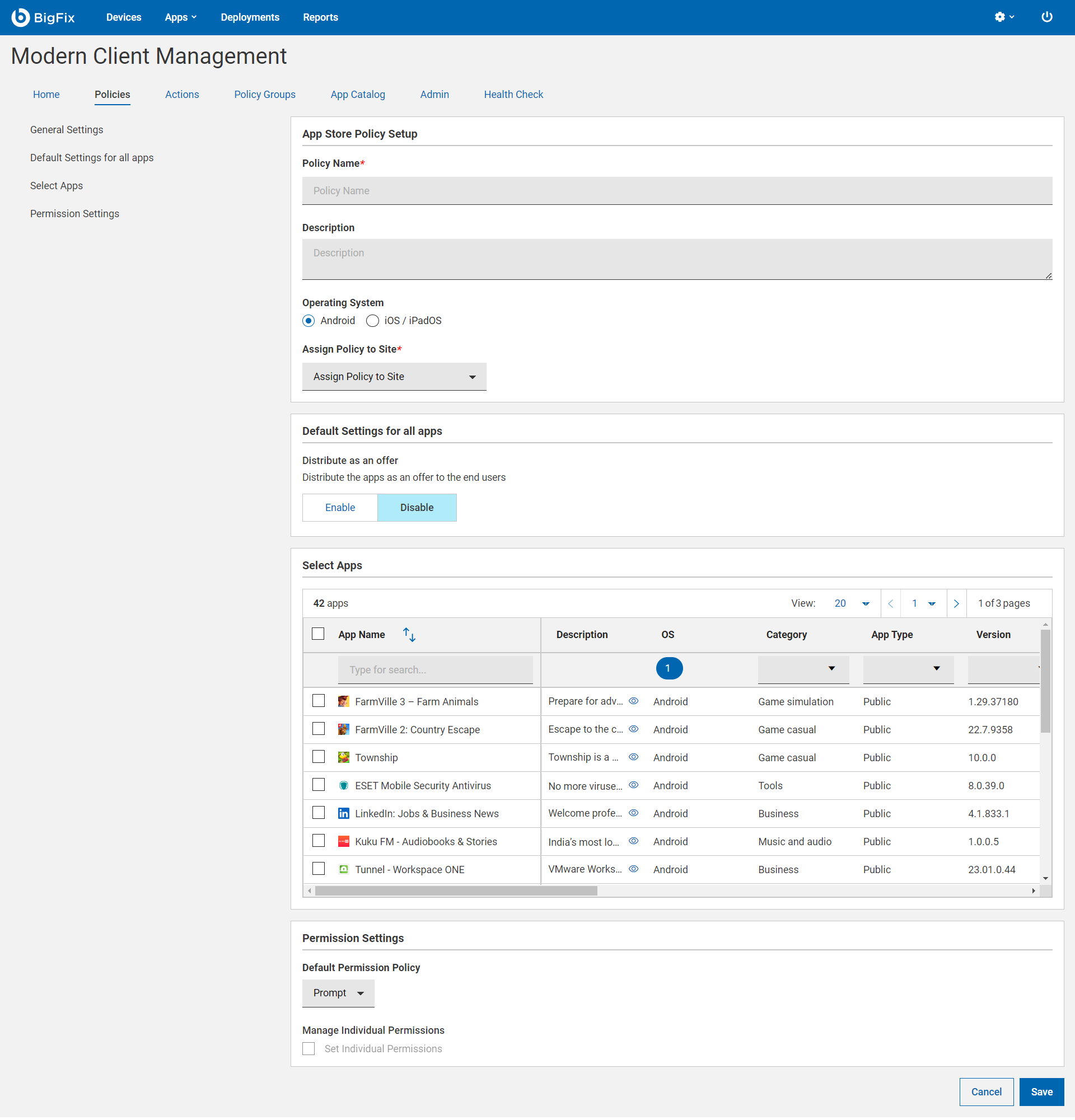 BigFix Mobile enables you to configure application policies to install applications from the App store on the Android, iOS, and iPadOS devices.
