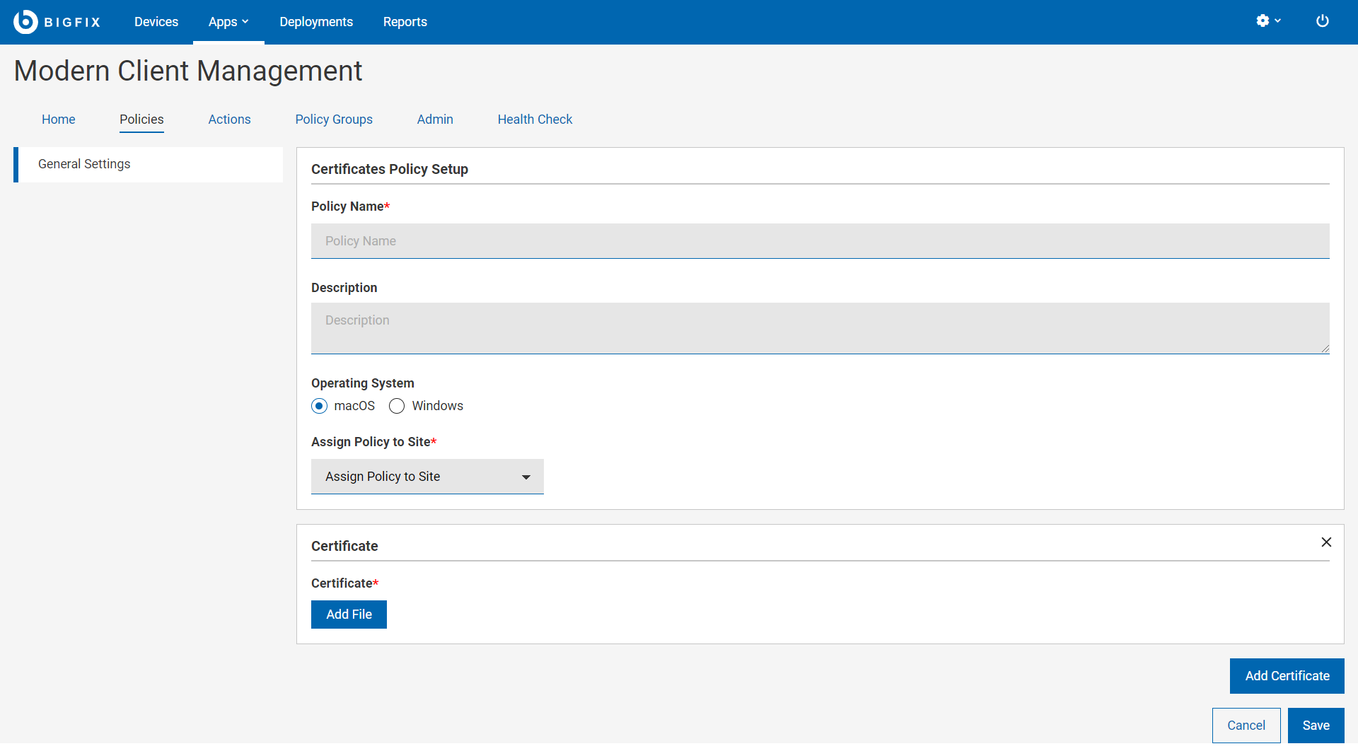Learn how to upload .pem and .der certificates to MDM server and deploy them on MDM endpoints.