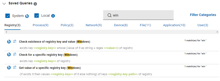 • Filter by query type (System or Local)
