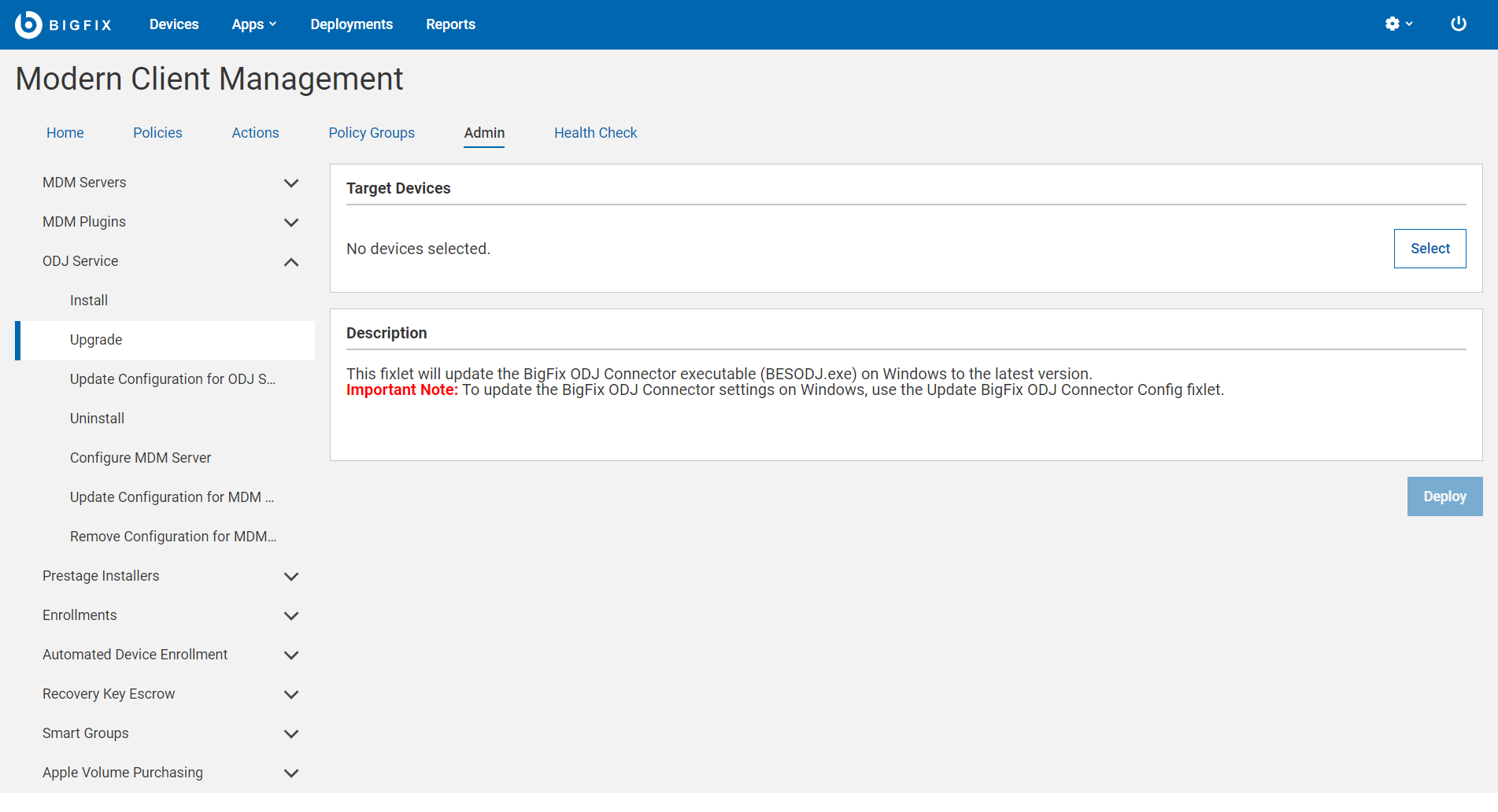 Review the number of targets selected and click Deploy.