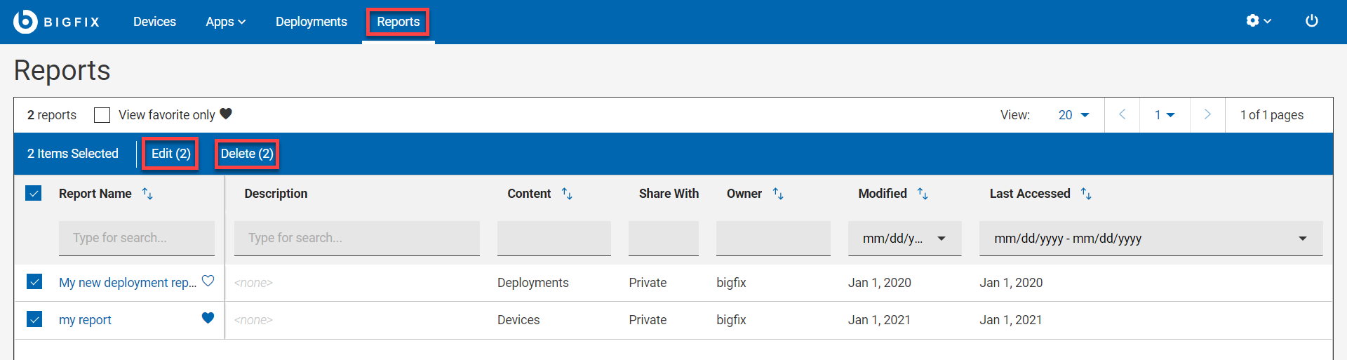 - Delete: To delete one or more reports, select the desired reports that you want to delete and click Delete.
