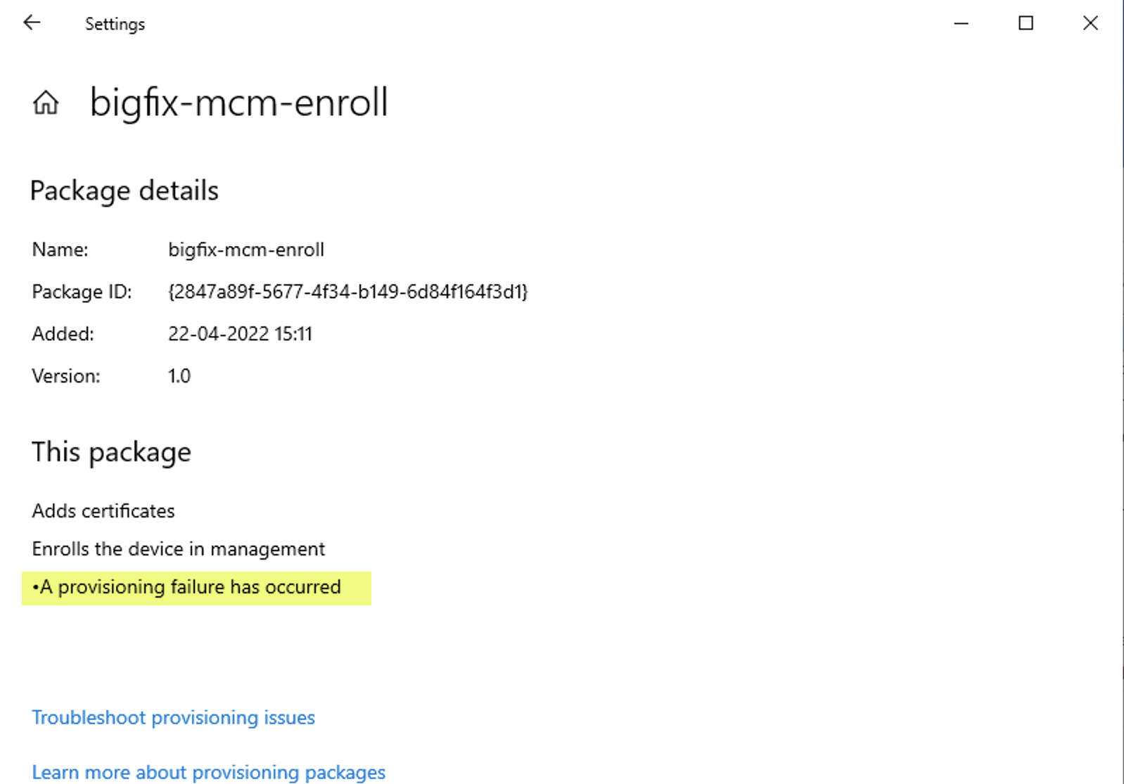 There can be many reasons for .ppkg enrollment failure, including but not limited to the following: