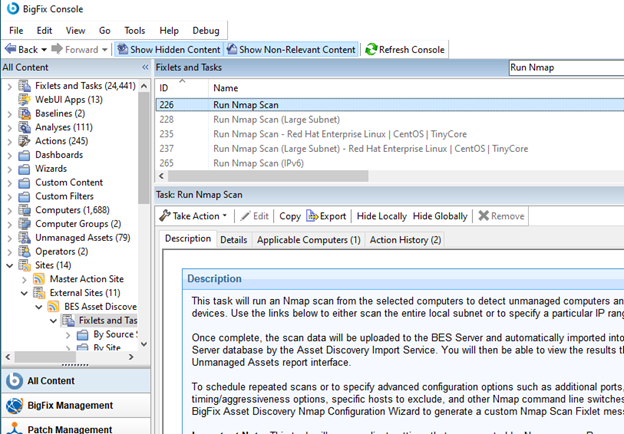 Select the Setup node in the Asset Discovery navigation tree to find all the task available to "Run Nmap Scan".