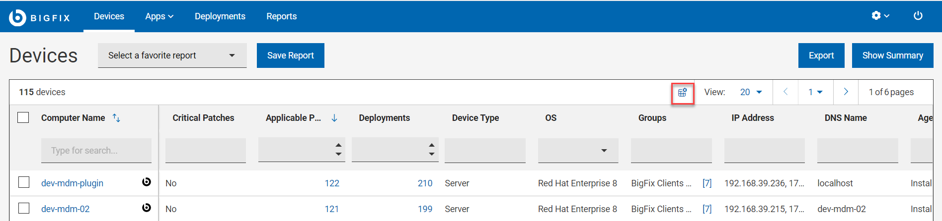 1. From the device list, click manage column icon.