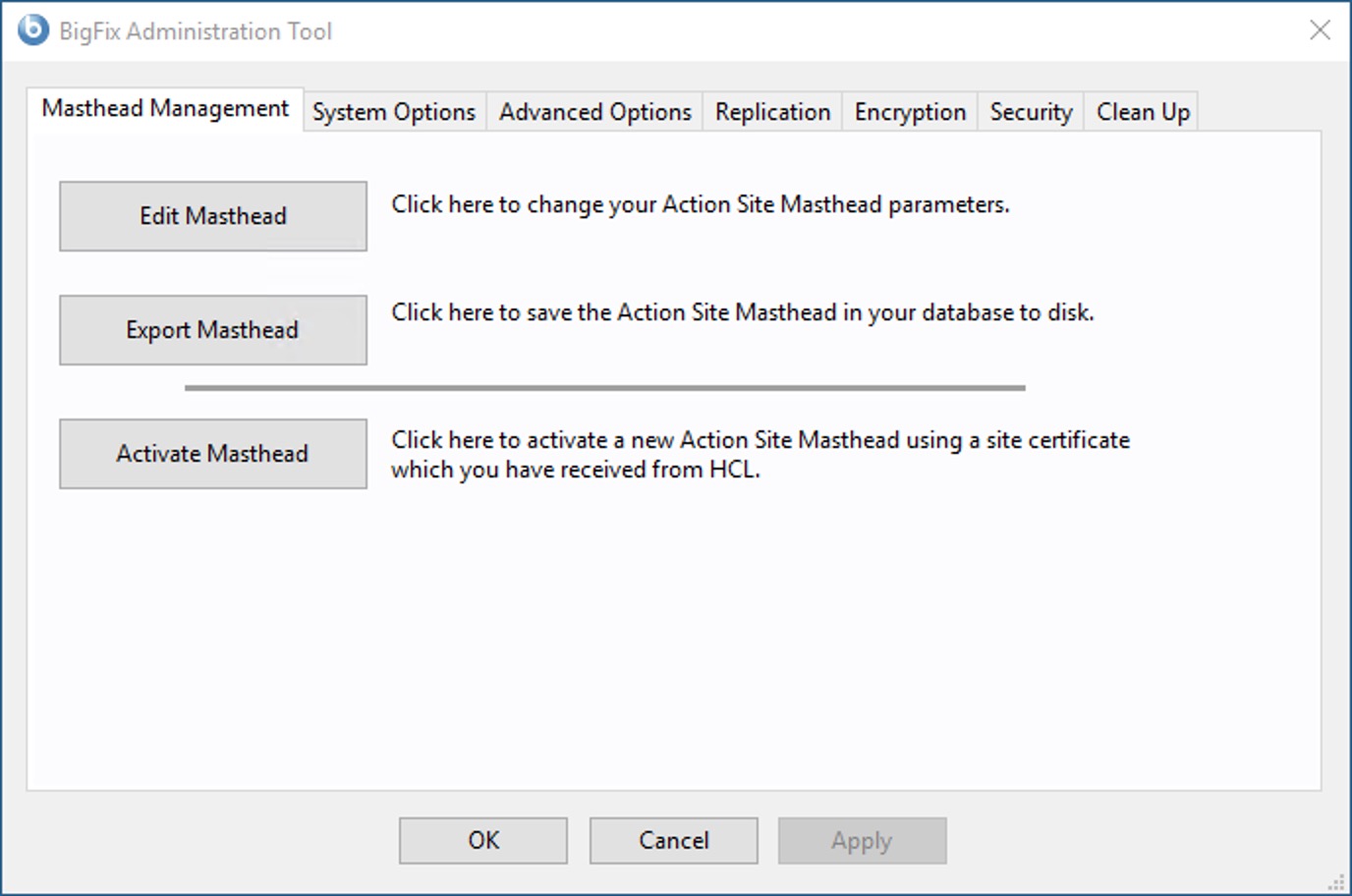 - Launch the program from Start > Programs > BigFix > BigFix Administration Tool.