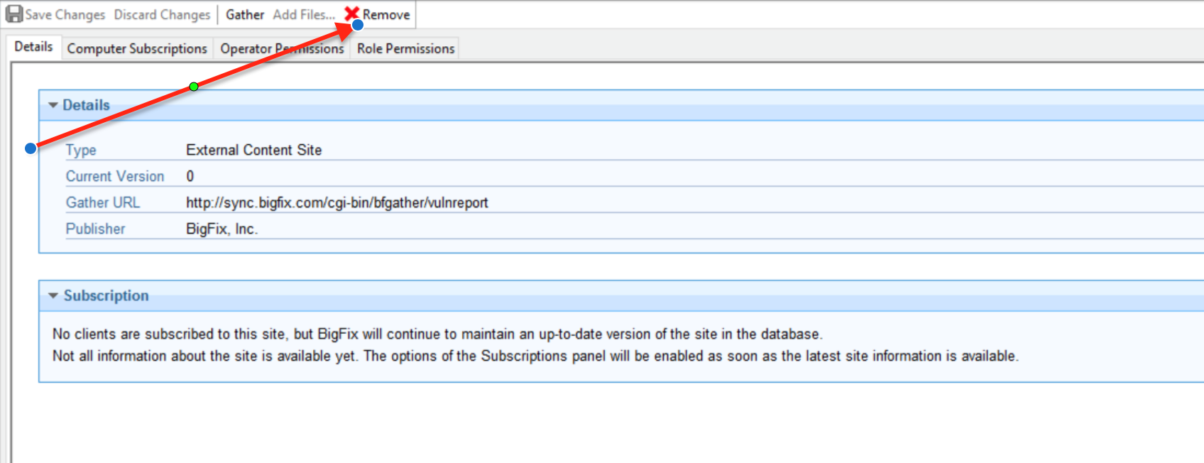 3. In the site list, find the site named Vulnerability Reporting. Click on the site name and then click on the remove button.