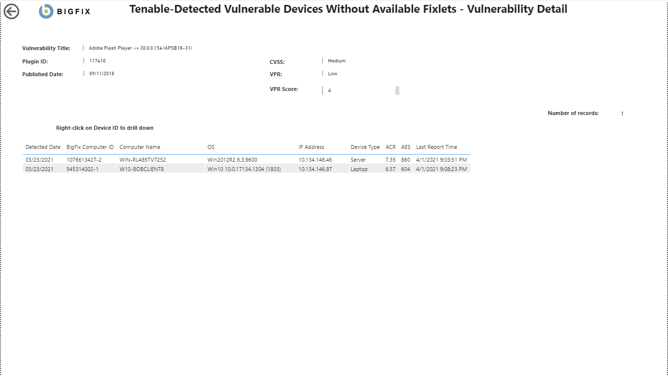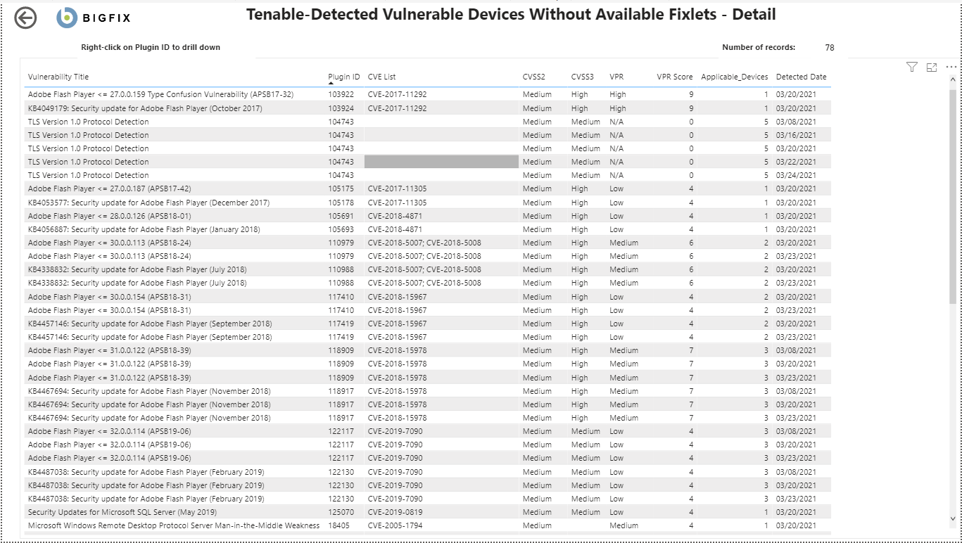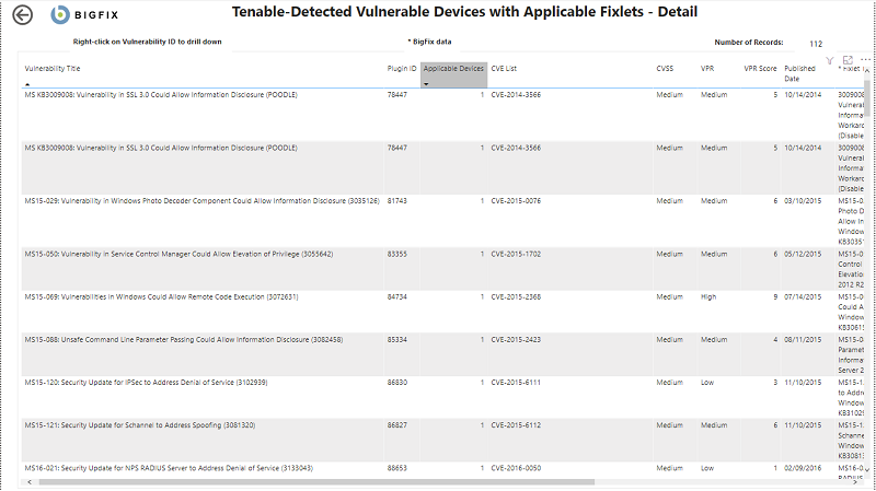 • Applicable Devices - devices that have been scanned by Tenable and for which vulnerabilities have been identified