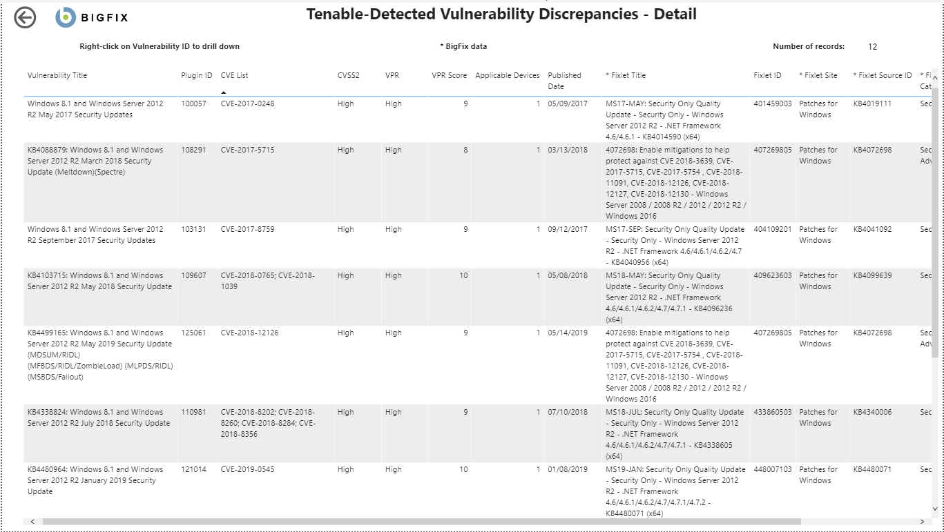 Detected Vulnerabilities with Applicable Fixlets