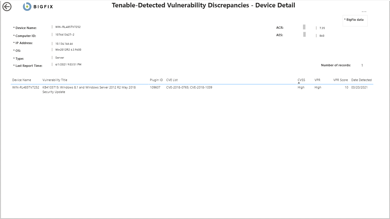 • AES - Asset Exposure Score: A metric that combines ACR & VPR (Vulnerability Priority Rating) into a single score to represent an asset’s relative exposure.