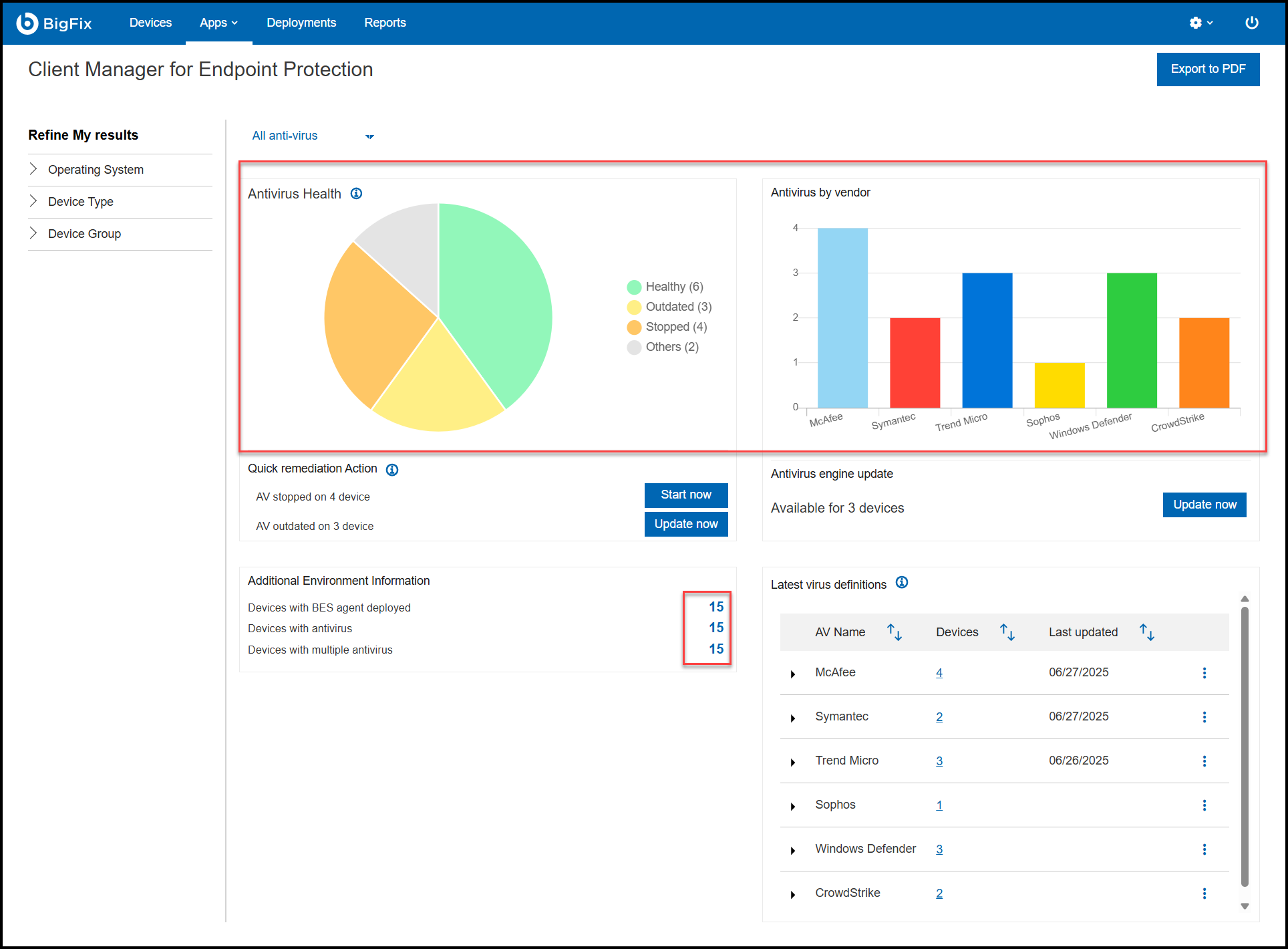 Note: You can also view the patches, custom, software, and deployments available for the individual device.