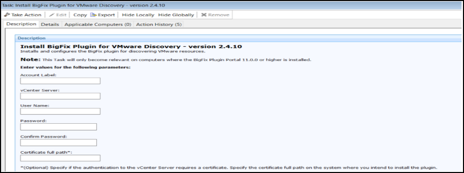 - Account Label: A name to identify this vCenter connection in BigFix.