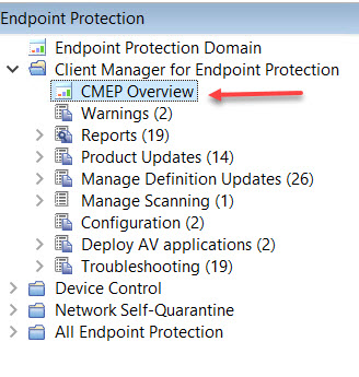 Client Manager Endpoint Manager の「概要」ウィンドウを使用して、組織のウイルス対策の更新を表示および管理します。