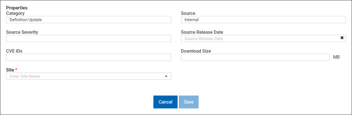 「ソース・リリース日」およびカスタム・コンテンツを保存する「サイト」を選択します。「保存」をクリックします。