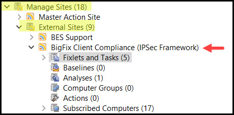 - この Fixlet サイトは、「BigFix Client Compliance Windows (IPSec Framework)」Fixlet サイトと併用するように設計されています。BigFix Client Compliance について詳しくは、https://support.bigfix.com/bes/sites/clientcompliance.html を参照してください。