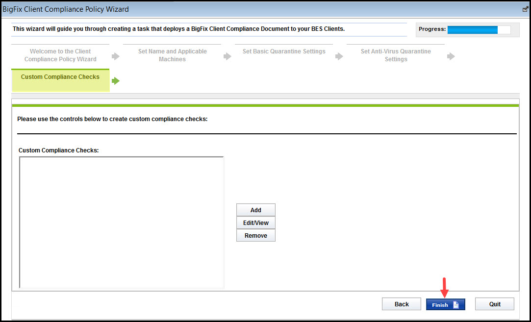 BigFix Client Compliance ポリシー・ウィザードにアクセスするには、ナビゲーション・ツリーから」を選択します。