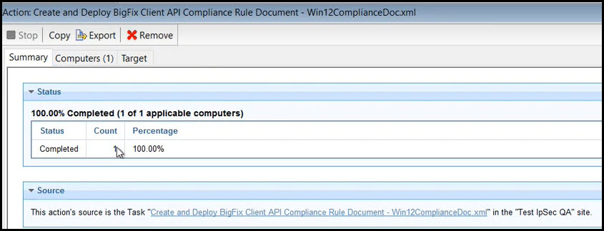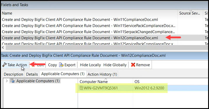「Fixlet とタスク」のリストから「タスク」を選択し、「アクションの実行」をクリックします。