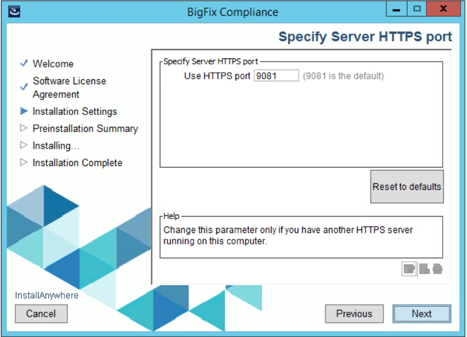 注: BigFix Compliance Analytics はデフォルトで HTTPS が使用されます。 - インストール・パス