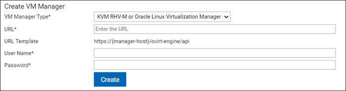 Oracle VM を追加するには、以下の手順を実行します。- VM マネージャーの URL を以下の形式で指定します。