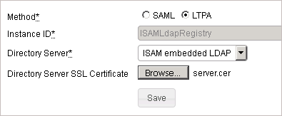 - シングル・サインオンの方法として「LTPA」を選択します。