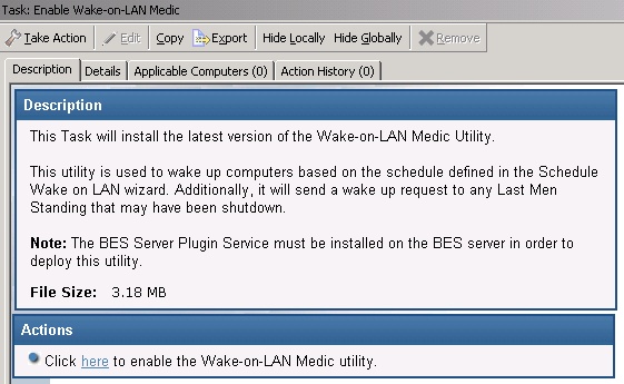 - Wake-on-LAN Medic ユーティリティーが有効でない場合は、「Wake-on-LAN の有効化」タスクは適用されない場合があります。