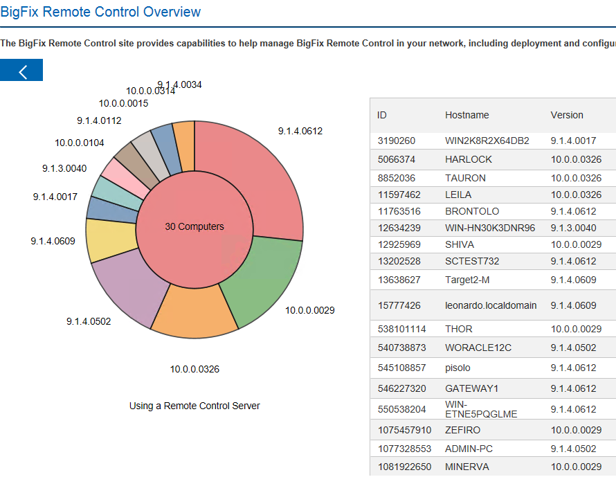 The Target Deployment Mode section shows the distribution of the type of target deployment that was carried out, on the computers in your environment. For more information about the different target deployment types, see Deploy the Remote Control components.