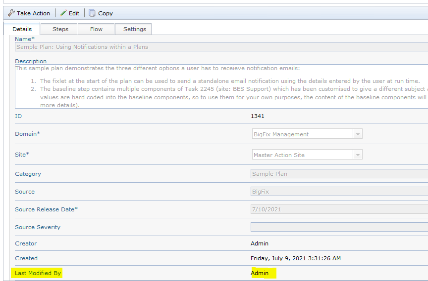 BigFix Lifecycle Server Automation には、サンプル・コンテンツの Automation Plan が用意されています。このサンプル Automation Plan には、クライアントとサーバー endpoints のサービス停止、サーバー endpoint へのパッチの適用、クライアントとサーバーのサービス再起動のための Tasks が含まれています。すべてのサンプル計画は読み取り専用です。サンプル計画を使用するには、計画をコピーし、名前を付け直してから要件に従って Fixlet、タスク、またはベースラインを使用してプレースホルダー Fixlet を更新する必要があります。