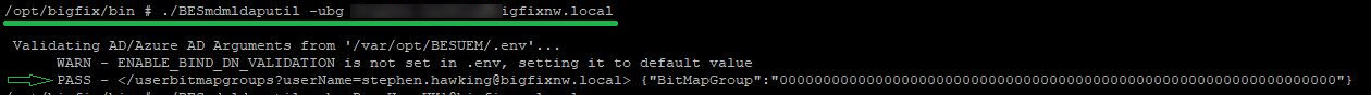 docker exec -it idservice /opt/bigfix/bin/BESmdmldaputil -ubg exampleuser@bigfix.local
